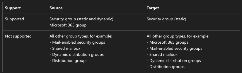 While group synchronization with cross-tenant sync is a welcome addition, there are a few important limitations to be aware of before you start planning your deployment: