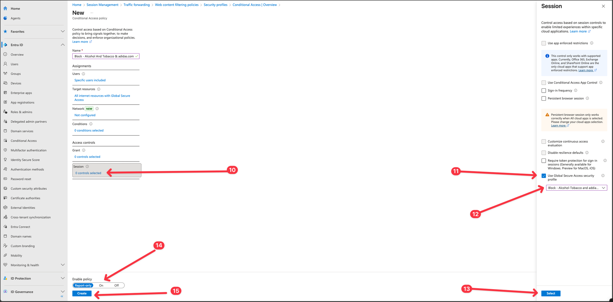 - Select Session -> Use Global Secure Access security profile and choose a security profile.