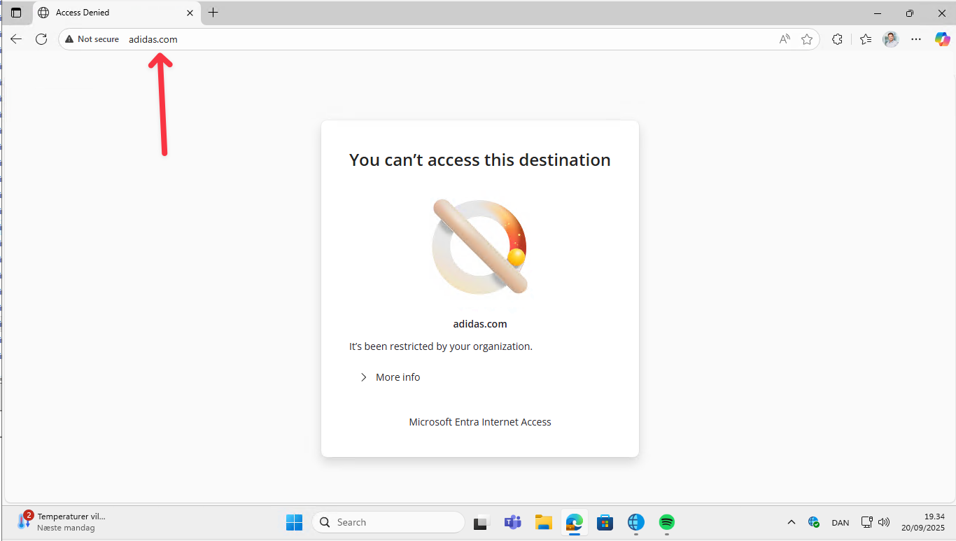 We can confirm that the Policy Block - Alcohol-Tobacco and addidas.com was triggered, resulting in the website adidas.com being blocked for the user.